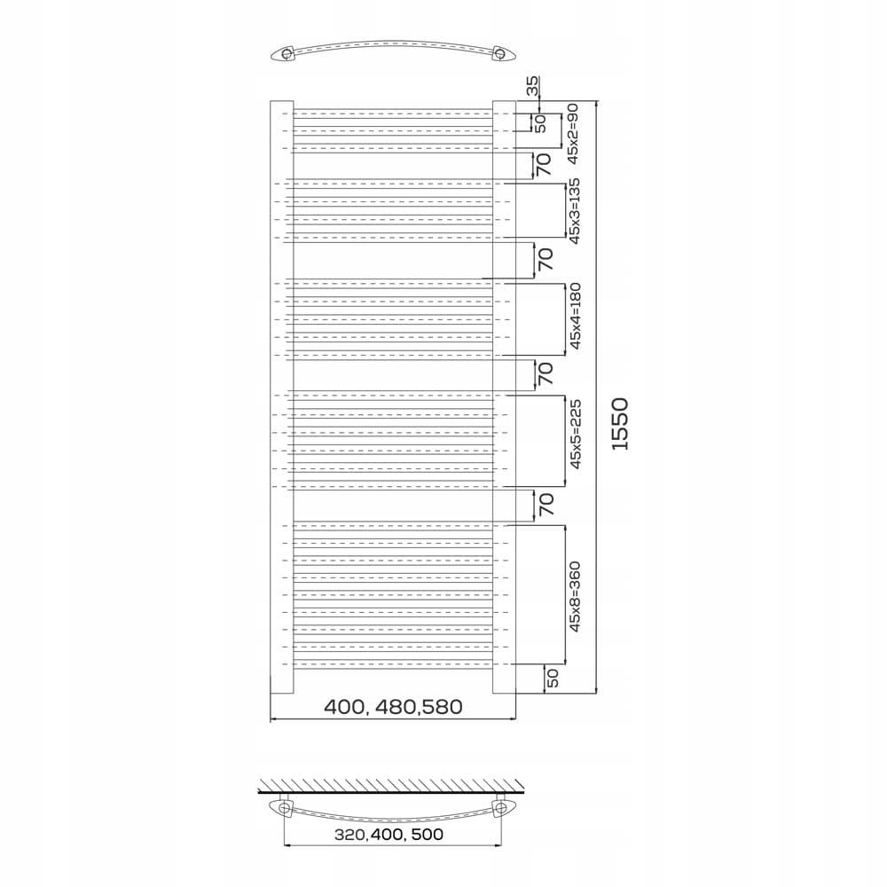 ✅wygięte delikatnie poziome profile ułatwiające wieszanie ręczników do wysuszenia
