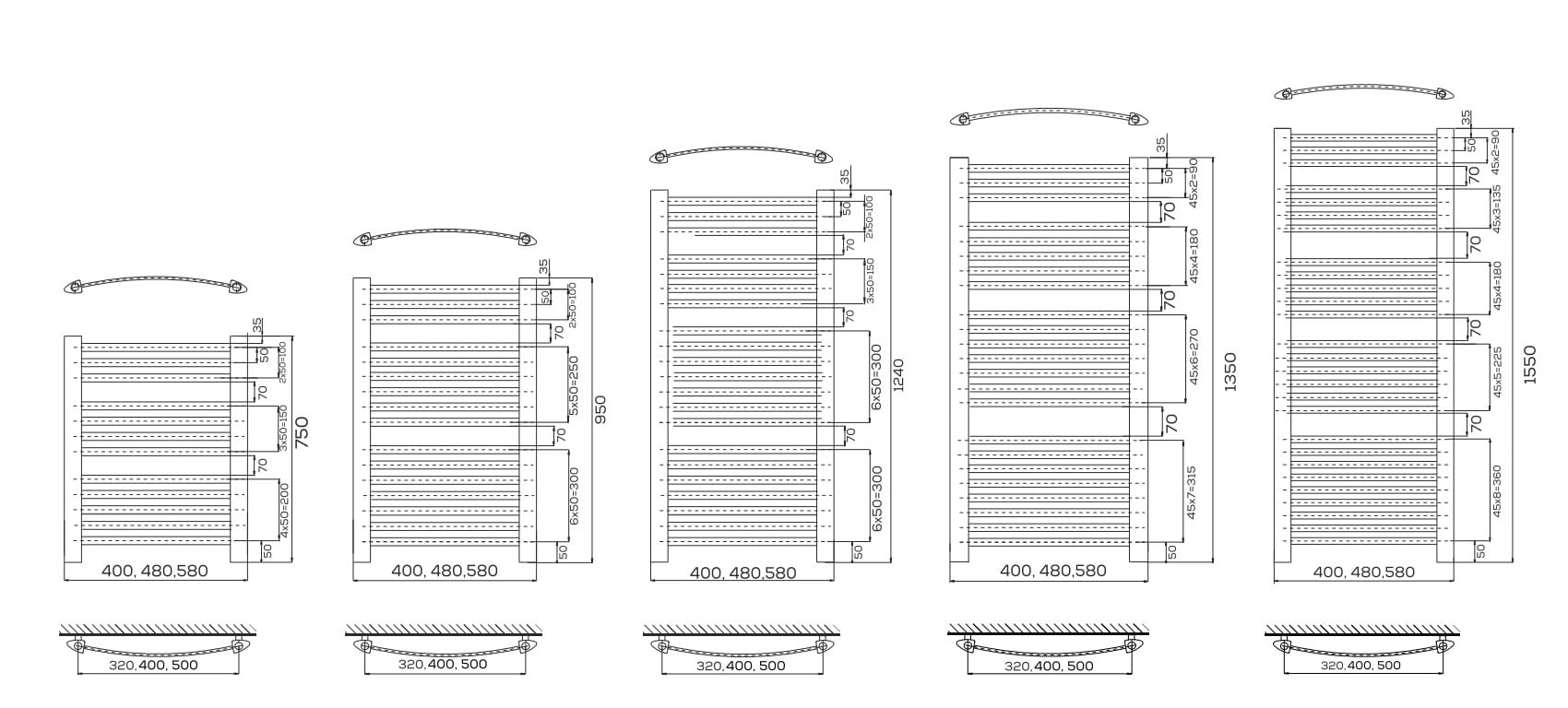 ✅wygięte delikatnie poziome profile ułatwiające wieszanie ręczników do wysuszenia