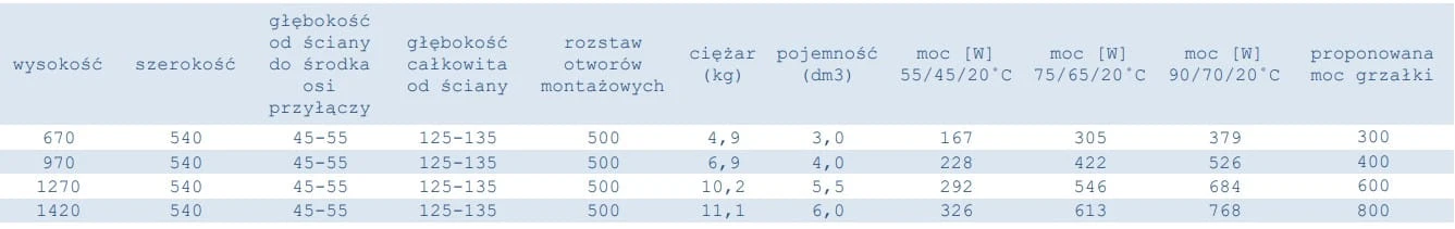 Dane techniczne grzejników