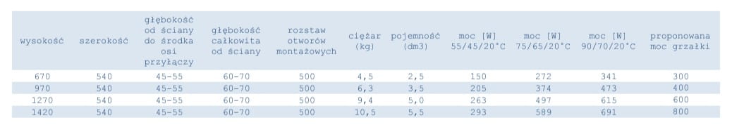 ✅ moc grzejnika zależnie od wielkości od 270 do 590 W