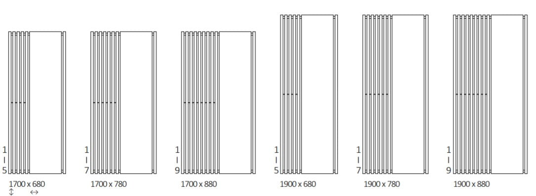 ✅ szerokości dla pionowych 38, 48, 58 i 68 cm