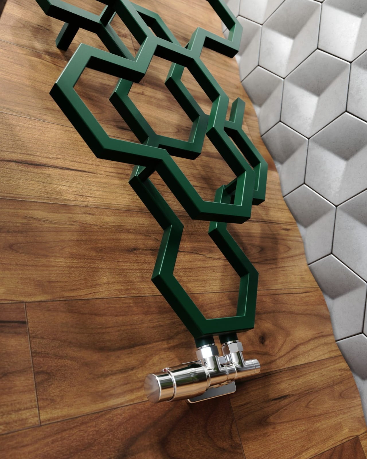 Unikalna forma grzejnika HEX sprawi, że Twoja łazienka stanie się elegancka i nowoczesna. Wybierz HEX, aby cieszyć się nie tylko ciepłem, ale również pięknem i funkcjonalnością.
