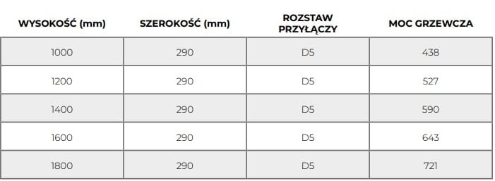 Idealnie sprawdzi się w łazienkach, korytarzach i pokojach kąpielowych, w których liczy się każdy centymetr. Grzejnik LUX dostępny jest w 5 wariantach wysokości – od 100 do 180 cm – co pozwala dobrać moc do wielkości wnętrza (od 440 do 720 W).