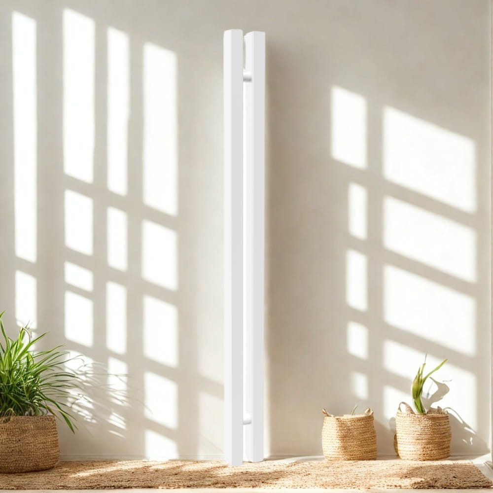 Największy model z serii SLIM. Wysokość 180 cm i szerokość tylko 9 cm – to smukły grzejnik, który bez problemu zmieści się między drzwiami, w wąskim korytarzu czy w małej łazience.
