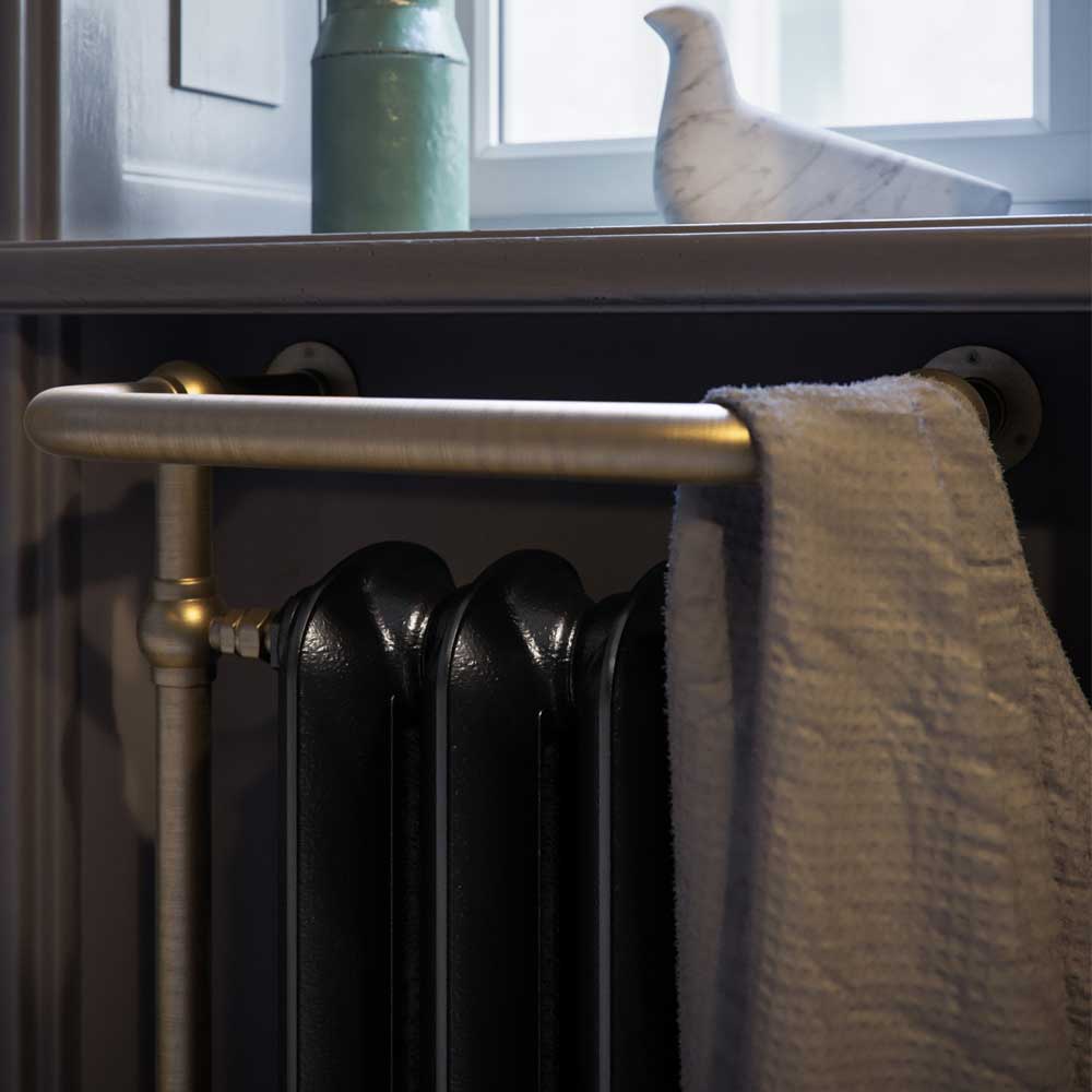 Grzejnik Plain Towel Rail to unikalna bryła stworzona w oparciu o trwałe żeliwo oraz gięty profil stalowy.