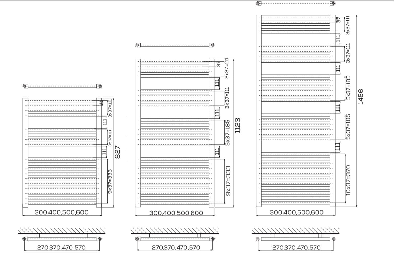 ✅ moc grzejnika zależnie od wielkości od 210 do 820 W