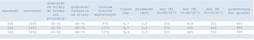 Dane techniczne grzejników