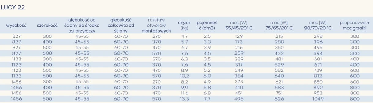Pozostałe wymiary i rodzaje grzejników LUCY znajdziesz tutaj