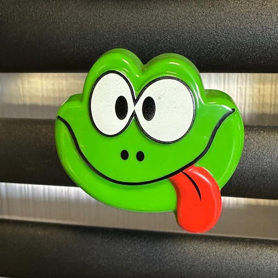 Zielona żaba z wysuniętym językiem to wieszak, który dzieci pokochają od razu!