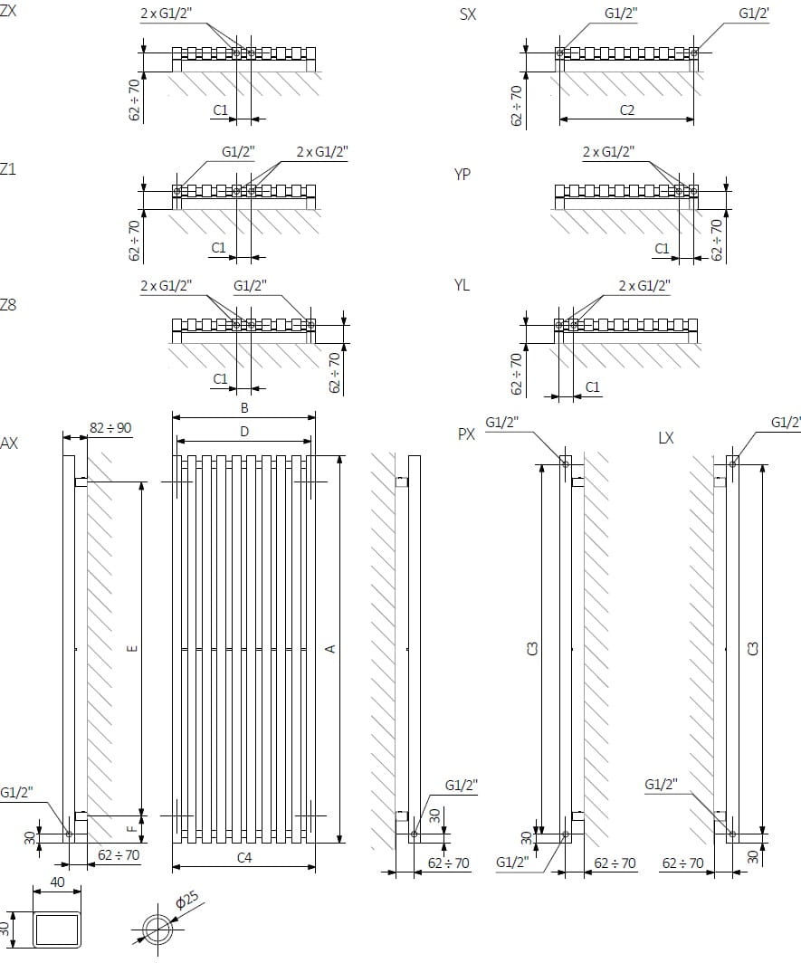 ✅ szerokości dla pionowych 38, 48, 58 i 68 cm